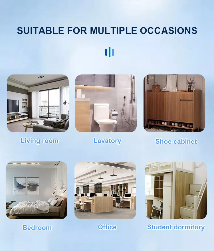 1. Familie Gebruik: geplaatst in de woonkamer, slaapkamer, keuken en andere thuisruimte, kan rookgeur, geur, vocht enzovoort effectief verwijderen.