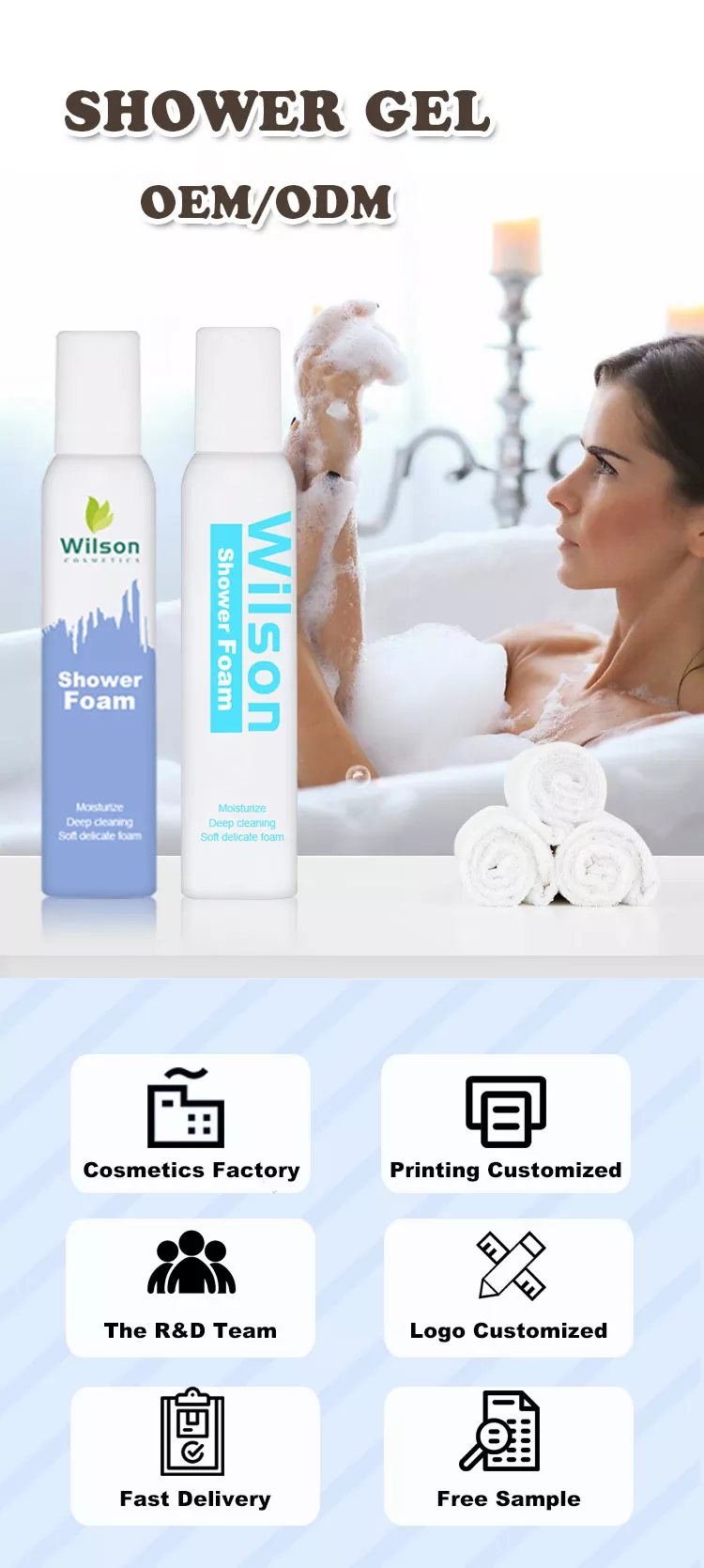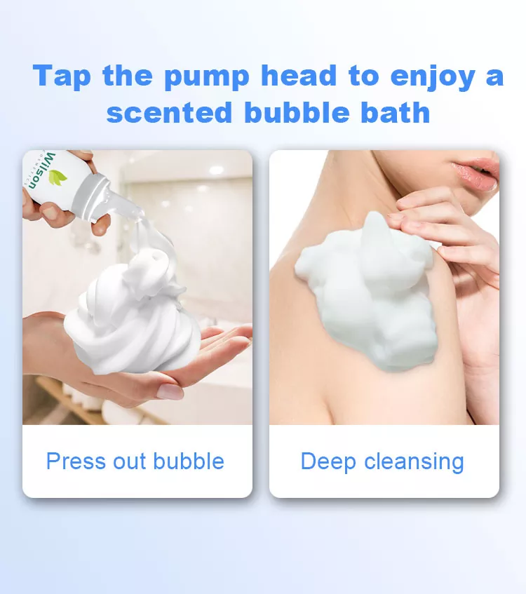 Wilson Long-Lasting Bubbles Hydrating Shower Foam biedt meer dan alleen reiniging: ze bieden een fluweelzachte omhelzing die smelt in je handen. Het schuim omhult je huid als een laag zachte, hydraterende wolken, verwijdert op milde wijze oliën en onzuiverheden en houdt vocht en voedingsstoffen vast in het huidoppervlak. Na het spoelen voelt uw huid niet trekkerig of droog aan, maar straalt deze in plaats daarvan langdurige hydratatie uit, alsof u zojuist een snelle, moeiteloze lichaamshydratatiesessie heeft voltooid